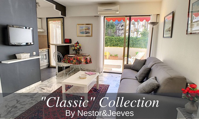 FRANCE TERRASSE is a pretty studio with terrace in a beautiful building Nice. It is ideally located just 30 seconds walk from the Promenade des Anglais and its beaches.In a colorful and Provençal style you will be seduced by its brightness, its South / West exposure and its exterior.Its large terrace of 20m2 including plants will allow you to enjoy good breakfasts in the sun.The apartment is located on the 1st floor with elevator, it benefits from a free WIFI connection by fiber optic as well as air conditioning.Located close to the sea you will find a few meters from the apartment all the local shops such as a bakery, a butcher, a supermarket, a florist, a cheese maker ...You will also be a few minutes walk from Nice's Carré d'Or such as rue de France and the pedestrian area where you will find many restaurants and shops. You then join Place Masséna, the famous Avenue Jean Médecin and its shops, as well as the Old Nice.FRANCE TERRASSE is composed as follows:TERRACE:The pretty terrace includes a sun lounger and a dining table and chairs to enjoy your meals outdoors.You will also find some pots made of plants.LIVING ROOM :The living room has a nice sofa bed Queen, a TV, a coffee table, a dining table and a closet.You benefit from air conditioning.KITCHEN:The open-plan kitchen is equipped with a fridge, a freezer, an oven, a microwave, a toaster, a kettle and a Nespresso coffee machine.BATHROOM :The bathroom has a beautiful walk-in shower, a towel holder, a hairdryer and a washing machine.The toilets are independent.FREE NESTOR & JEEVES SERVICES:- CONCIERGERIE : we provide concierge services like hotels- ARRIVAL 7 days a week : you can pick up the keys anytime from 10am at our "boutique" Conciergerie- ASSISTANCE 7 days a week : we are present in case of a problem- LUGGAGE STORAGE 7 days a week : you can leave your luggage at your departure upon reservation- GOOD DEALS : discounts and exclusive offers in shops and restaurants in Nice- LINEN PROVIDED: bed linen, bath and hand towel, bath mat, tea towel- WIFI : wireless internet connection- AMENITIES : miniatures of soap, shower gel and body milk for your arrivalPAYABLE NESTOR & JEEVES SERVICES (on reservation and subject to availability):- AIRPORT TRANSFER : car or van according to your needs- PERSONALIZED WELCOME : for an event (birthday, wedding ...)- PRIVATE PARKING : within 5 minutes walking distance from your apartment