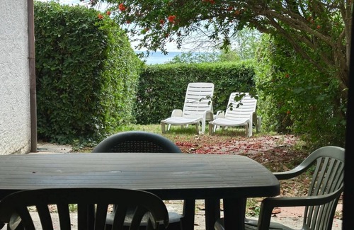 Description: three-room terraced house. Garden on the front with delightful sea view equipped with umbrella, table, chairs, pergola and deckchairs - large living room with dining table and double sofa bed - separate kitchen - double bedroom - second bedroom with two single beds - bathroom with shower and washing machine - garden on the back with outdoor shower.