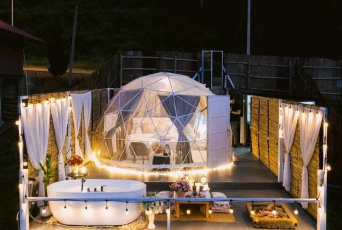 Offering mountain views, Naraview at phuchifa in Thoeng provides accommodations and a terrace. The property features free private parking. The accommodation offers a hot tub, free Wifi throughout the property, and family rooms. There's a private bathroom with shower in every unit, along with bathrobes, slippers, and a hair dryer. At the luxury tent, the units are fitted with a seating area. An American breakfast is available at the luxury tent. Mae Fah Luang - Chiang Rai International Airport is 51 miles away.