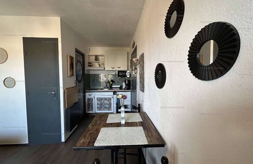 Ce studio de vacances se situe au 1er étage et est composé d'un séjour avec un clic clac, télévision (sous réserve d'une bonne réception), une kitchenette tout équipée donnant sur un balcon et d'une salle d'eau avec WC.
