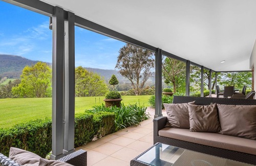 Narnia is located on a working Angus cattle farm, surrounded by amazing landscape overlooking the expansive green paddocks and magical mountain views.