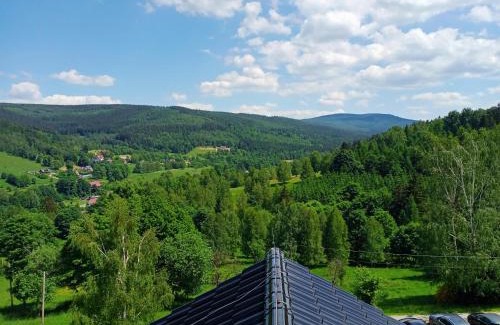 Natura Świeradów-Zdrój in Świeradów-Zdrój provides accommodations with a garden and a terrace. The apartment, set in a building dating back to 2020, offers free Wifi and free private parking. Dinopark is 11 miles away, and Szklarska Poreba Bus Station is 11 miles from the apartment. The units have a fully equipped kitchenette with dining area, a fridge, kettle, and a stovetop. The rooms are fitted with a private bathroom with a shower, while selected rooms here will provide you with mountain views. At the apartment complex, the units are fitted with bed linen and towels. During the colder months, guests can enjoy winter sports in the surrounding area. Death Turn is 8.9 miles from the apartment, while Izerska Railway is 11 miles away. Copernicus Wrocław Airport is 85 miles from the property.