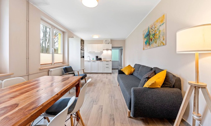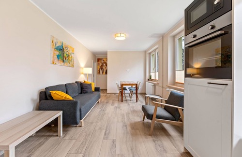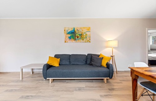 Comfortable double beds await you in the holiday apartment. A fully equipped, elegant kitchenette and a living room with a comfortable couch, perfect for cozy evenings. The modern shower bathroom is ideal for refreshment.