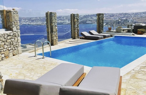 Natural Stone Villa has amazing view in town and aegean private pool free park | Villa in Mykonos