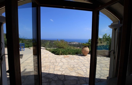 Part of the property is natural. You can reach the lower part of the property via a stone staircase. There are lots of local herbs etc. You have a wonderful view over the sea to the Akrotiri peninsula.