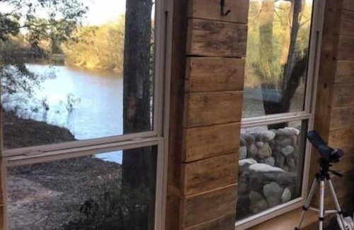 Naturalist Boudoir on Point is our newest cabin and ready for your staycation. Some say she is our BEST yet. High ceilings, huge windows, one of a kind rock tub with infinity edge in center of cabin. Outdoor hot tub and outdoor shower. Splendid views of waterway and sunrise. Floating dock and deck for fishing. Beach area. Extremely private for the naturalist. Come relax, reconnect and recharge.