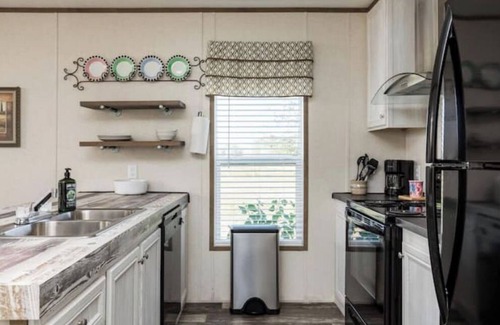This precious new home is located on our 300 acre Ranch with amazing views. Horses and cows grazing in the pasture and acres and acres of land with no home in sight. Bird watching is a must... eagles, hawks, spoonbills, ducks, etc. Imagine sitting in the outdoor hot tub at night and STARGAZING!!! Fully furnished mobile home with 3 bedrooms, 2 full bathrooms, dining area, full kitchen, washer/dryer, central air and heat, all electric. All inclusive, bring your food and beverages!!!