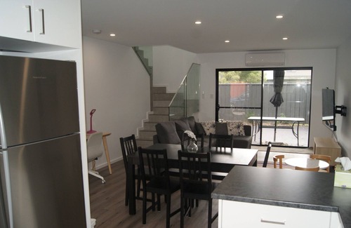 This comfortable 3-bedroom home has 2 x queen beds, 1 x single & 1x pull-out beds in a decent sized bedrooms. The bathroom is very modern & stylish, all upstairs.