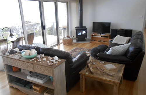 There are two queen sized bedrooms both with ensuites one of which has a luxurious bath with a fold back window overlooking the ocean. There is a spacious open plan kitchen, dining and living area connected to a large deck and there are balconies off both bedrooms. Comfortably furnished with a combustion heater and satellite television the property has absolute water frontage with sweeping views across a breathtaking bay to Mt Killiecrankie with the beach and foreshore just a short walk away. The minimum booking is 4 nights. Please send a message if you would like to enquire about a shorter stay.