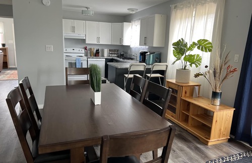 We offer most appliances and utensils you would need and also cooking essentials. A take one/leave one pantry will provide a rotating selection of random snacks and extras! We have a state of the art coffee maker for coffee connoisseurs. Coffee and tea provided to get you started. Drinking water is town water and is totally potable and safe to drink.