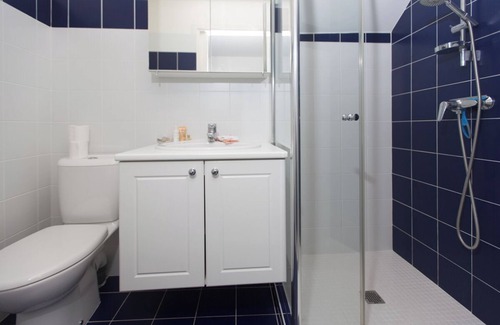 Bathroom: walk-in shower, heated towel rail.