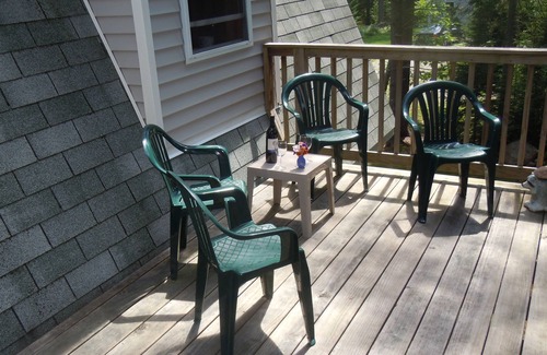 Our "Apartment in the Maine Woods" was built in 2005 to attract our sons and their families to visit. We have 2 daughters-in-law to please (so you know it is extra nice). The apartment is turn key ready with everything you need for a comfortable week's stay. It is pine paneled,Air-Conditioned and Heat, has 2 bedrooms, a medium size living area, a single bath with a stall shower, a FULL kitchen and a deck overlooking Crockett Brook as it babbles by. Guests love it! Apartment includes a full size washer and dryer. (we provide laundry detergent).We have wifi and an outside fire ring and a small Cuisinart gas grill.. We provide all linen, most condiments, paper goods and most other things you might need. We even supply tooth paste!We stock your refrigerator with a dozen eggs, stick of butter, bottled waters, sodas,mayonaise,mustard and ketchup. Cabinet includes flour, sugar,coffee,tea,oil and spices. Enjoy host Judy's Maine blueberry muffins on your first morning. Talk to host Skip about a personalized boat tour of Lake Megunticook, a glacial lake(weather permitting) All part of your experience with us!