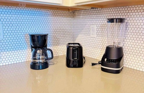 -Includes refrigerator, stove, microwave, coffee maker, blender, toaster, cookware, wine fridge and utensils