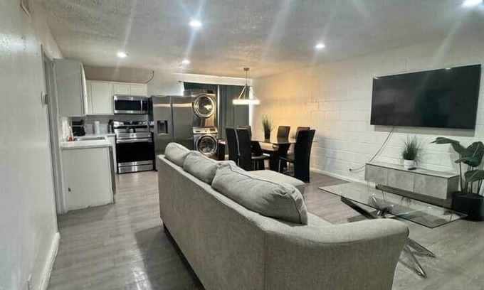 Near Fremont | 3 beds, 2 bedroom, 2 baths is located in Las Vegas. Near Fremont | 3 beds, 2 bedroom, 2 baths provides accommodation, featuring Air Conditioner, Parking, TV, among other amenities. This Apartment features Air Conditioner, Parking, TV, to make your stay a comfortable one.