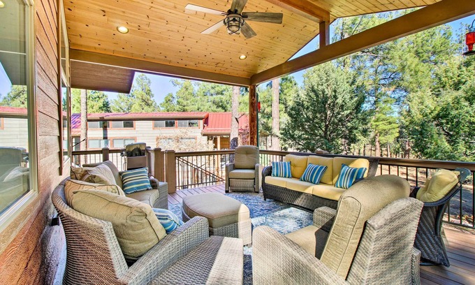 Near Hiking: Cabin w/Deck & Grill in Show Low is located in Show Low. Near Hiking: Cabin w/Deck & Grill in Show Low provides accommodation, featuring Balcony/Terrace, Bedding/Linens, Wellness Facilities, among other amenities. This Cabin features Balcony/Terrace, Bedding/Linens, Wellness Facilities, to make your stay a comfortable one.