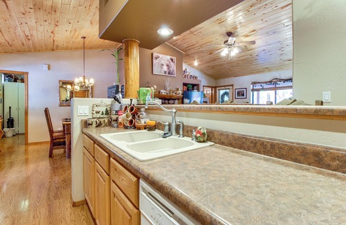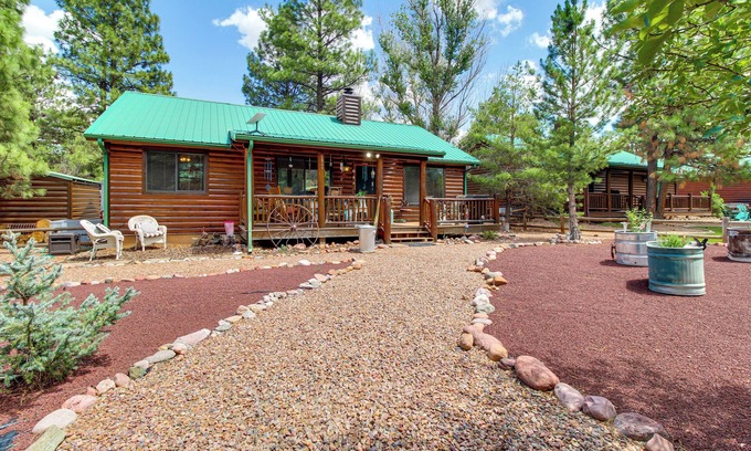 Whether you’re seeking a high-country adventure or a tranquil cabin escape, you’ll find everything you need at this 2-bedroom, 2-bath vacation rental in Overgaard! Explore the Mogollon Rim trails or spot wild horses in the Apache-Sitgreaves National Forest, then head home to grill a feast on the deck. As evening sets in, relax by the fire and play a round of board games. Book this outdoor oasis today!