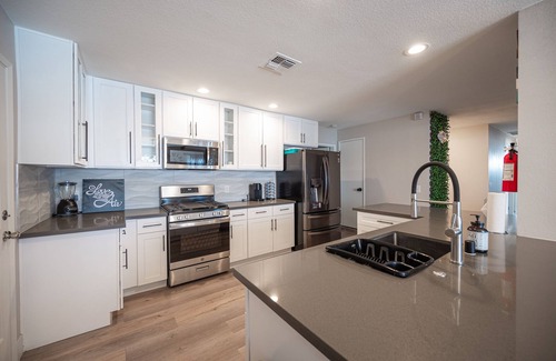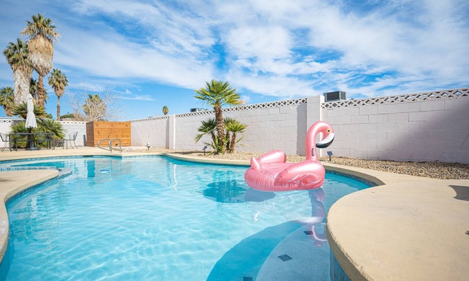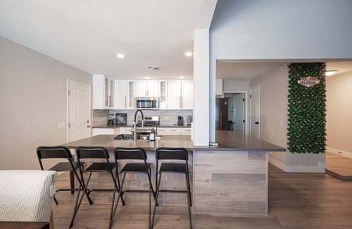 This special place is close to everything, making it easy to plan your visit. 8 Minutes away from Las Vegas Strip. Comes with a full kitchen, dining room, arcade, pool, jacuzzi, BBQ grill, outdoor dining area, corn-hole, large TVs. Great location nearby great places to eat, Casino, Sphere, Conventions. Ask about pool and spa heating for a fee!