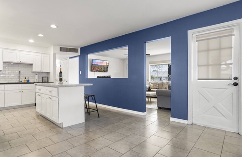 Spacious interior with three unique spaces to socialize. In the back living room, enjoy the Built in vanity area for four to get ready for your night on the town! Take your insta pics in front of the lit green wall showcasing the "Good Vibes" to all or challenge your opponent to a game of foosball or Pac Man. In the dining area pull up a stool and have a drink or enjoy your favorite meal. In the front living area play a variety of board games, watch a movie or binge watch TV while eating popcorn.