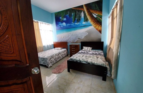 This is the perfect house for a great vacation relax in Huanchaco Trujillo, house with 1 bedroom 1 bathroom, with a magnificient view of Huanchaco Beach, House full furnished , with balconies and a pool at 4th floor, after a long walk in Huanchaco or Trujillo , get a relax by the pool and enjoy the view, Full american kitchen, with all you need, from the house walk only few meters to the beach, House is near to restaurants and Surf Schools, also 15 minutes to the airport and Museums, Internet available in all house, House can acomodate a large numerous guess