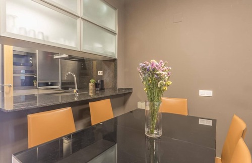 This bright apartment was designed to combine modernity and quality. At the entrance, you will find the fully equipped kitchen with all the utensils so you can prepare your own meals during your stay if you wish.