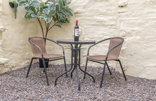 Head upstairs to discover the sleeping quarters. The large master bedroom features a comfortable double bed, a dressing table, ample clothes hanging space, and a cosy bedroom chair—perfect for settling in with a good book. The second bedroom is thoughtfully arranged with two single beds, making it ideal for children or additional guests.