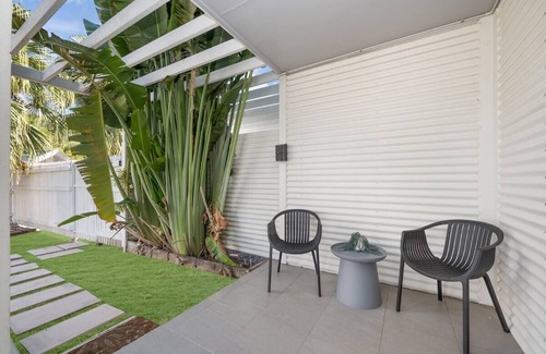 One bedroom studio apartment with great storage, powder room, upgraded bathroom and kitchen, ceramic tiles throughout, fully security screened and air-conditioned. A large fenced exclusive use courtyard featuring high fences and covered front patio for outdoor living. Covered parking for one vehicle in a secure area.