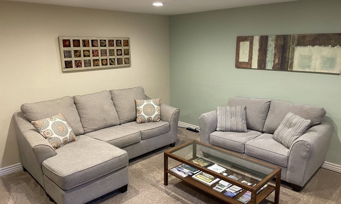 —-Kitchen with gas range/stove, full size fridge, microwave, garbage disposal, k-cup coffee maker, toaster, blender, cookware, dishes and utensils. —-Full bath - WiFi password upon arrival