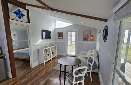 The cottage comfortably sleeps 2 with an ensuite almost as big as the bedroom. All linen, towels & luxury toiletries are supplied, there's nothing to do but make yourself at home and unwind! The country kitchen is fully equipped with cooktop, oven, dishwasher, bar fridge with tea and coffee provisions & some essential condiments supplied. Lounge and dining seats 2 with reverse cycle air-conditioning to keep the temperature just right. A small selection of board games are also supplied. In the large carport, a washing machine, full size fridge & freezer and foldable clothes line are provided for guest use. A firepit is available April to August, out of fire permit season. A provision of firewood, kindling etc. is kept in the carport.