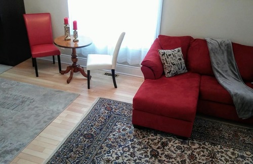 Only 5 minutes from downtown St Sauveur, this magnificent modern villa / semi-detached house on 2 storeys offers luxury and comfort. The cleanliness and freshness of the place invite the guest to relax and rest. The facilities are numerous, the decoration is very tasteful. The crystal chandeliers and the colorful Tiffany-style tulip lamp in the living room create a bright, subdued atmosphere at the same time. The kitchen island and its bar chairs invite you to toast with friends. IRRESISTIBLE Brief !!