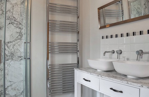 The heart of the home lies in the modern and well-equipped kitchen, seamlessly open plan to the inviting dining room. Whip up delicious meals with ease, using state-of-the-art appliances and ample counter space, before gathering around the dining table for convivial meals and lively conversation. After dinner, unwind in the cosy living room, where plush furnishings and tasteful décor create an atmosphere of relaxation and warmth. Curl up beside the fireplace with a good book or sink into the sumptuous sofas for a movie night with loved ones. Downstairs, a convenient cloakroom offers added convenience for guests, while upstairs awaits a sanctuary of tranquillity in the form of two king-size bedrooms. Sink into luxurious linens and enjoy peaceful nights of uninterrupted sleep, waking up refreshed and rejuvenated each morning. Indulge in a moment of pampering in the very generous master bathroom, featuring a decadent roll-top bath where you can soak away the stresses of the day. For added convenience, a second shower room ensures that everyone can freshen up with ease before heading out to explore the surrounding countryside. With its perfect blend of modern amenities and timeless charm, our cottage farmhouse is the ideal choice for your next holiday getaway. Book your stay today and experience the epitome of comfort and style in the heart of the countryside.