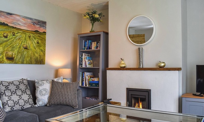 Nestled amidst the tranquil countryside, this charming holiday cottage offers breath taking rural views and sits adjacent to a working farm.. Step to entrance.