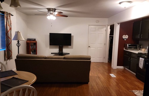 You will stay in a modern looking barn which has one bedroom apartment attached. This is a separate apartment, not shared with homeowner. The property is shared with homeowner. A Creek on property leads to a lake (Rupert Lake .5 miles) and another one close by (Clear Lake 6 miles) both with a public access. Groomed walking trails on the property (total property is 18 acres). Kal-haven trail nearby as well for walking, running, snowmobiling and biking. Ski resorts and snowmobile trails nearby (Timber Ridge and Bittersweet). Plenty of parking for a trailer. Centrally located to Kalamazoo universities (WMU, K college, KVCC). Racing/ Speedways nearby: Kalamazoo Speedway 3.9 miles, Martin track 14 miles and Gingerman 26 miles. Security cameras on the property. Smart TV and wifi (extender).