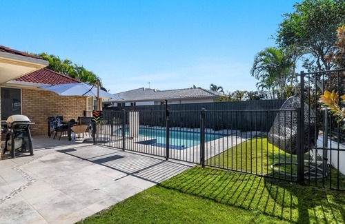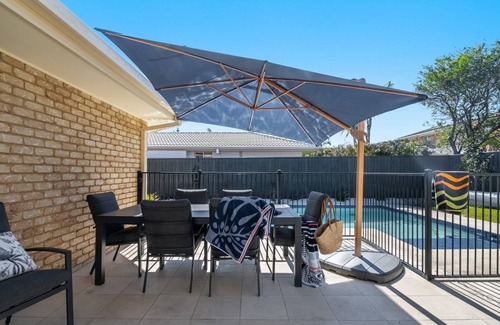 Each bedroom has a queen bed and built-in wardrobe. There is one bathroom with a shower and a bath, a separate toilet plus a laundry. The backyard has a shaded tiled area with table and chairs overlooking the sun-drenched pool. The garage is not available, however there is driveway parking and plenty of street parking, with the property especially well-suited to boat parking.