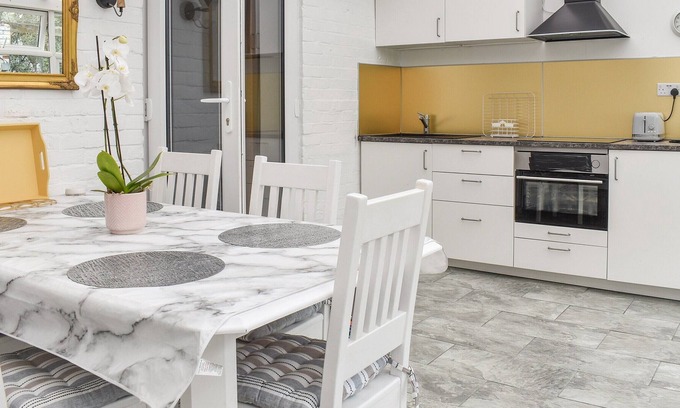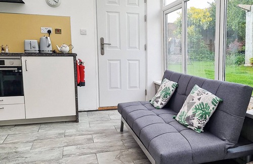Bedroom 2: Kingsize (5ft) Bed, Smart TV. Gas central heating, electricity, bed linen, towels and Wi-Fi included. Garden with sitting out area and barbecue (shared with owner). Outdoor swimming pool (shared with owner, 12m x 6m, depth 0.8m-2m, 10:00-19:00). Private parking for 1 cars. No smoking. Please note: Sorry, no hen or stag parties. . Nether Oslands is a perfect dog friendly holiday home for friends or a family looking for a break away on the south coast of England. The bright open plan living, dining and kitchen area looks out to the garden and shared swimming pool.