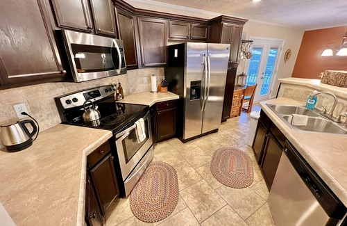 The kitchen is fully equipped with stainless steel appliances. There's also a large dining room that seats 6 people, so you can enjoy your meals with your family and friends.