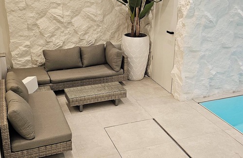 The apartment has private acesss to a Gym, Swimming pool and a second Bathroom. Access to private Gym + heated Swimingpool + second Bathroom is only provided when booked extra for €150/ day. If the area is not booked the door is locked.