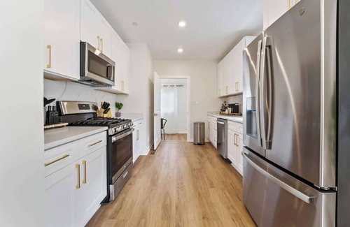 Stay in style at this newly remodeled 4BR, 2BA retreat in Oak Park. Just minutes from Chicago, this elegant home offers a spacious layout with refined finishes, a fully equipped kitchen, and a stylish living area ideal for relaxation or entertainment. Enjoy nearby dining, shopping, and the charm of Oak Park’s historic neighborhood, all with the ease of quick access to the city. Truly a perfect location and gorgeous home with tons of natural lighting and space for up to 8 guests!