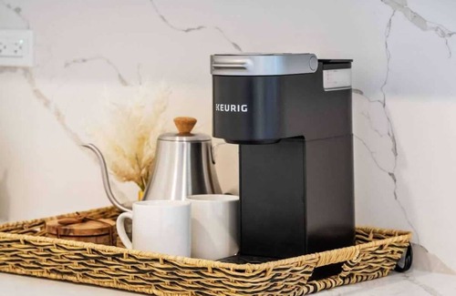 • Coffee maker + kitchen essentials included