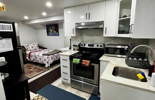 Experience convenience at this centrally located Vrbo. Nestled in a prime spot with easy access to major highways, enjoy comfy accommodations with a queen-size bed (for two guests), sofa bed ( for a single guest), TV, Wi-Fi, and a fully-equipped kitchen. Central heating and AC ensure year-round comfort. Book your stay and savor convenience, comfort, and accessibility in Mississauga.