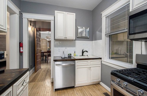Welcome to The Fry Flats - Unit 1! Located in the heart of Downtown Kalamazoo, you are only steps away from shopping, dining and adventure! A historic Victorian home built in 1904 updated with modern luxuries! This first (1st) floor unit is a spacious 1,380 square feet with 2 large living rooms, a full kitchen, dining room, bathroom, 2 bedrooms and pullout sofa bed. 3 smart TVs and board games for family fun! Experience all that downtown Kalamazoo has to offer in this beautiful flat!