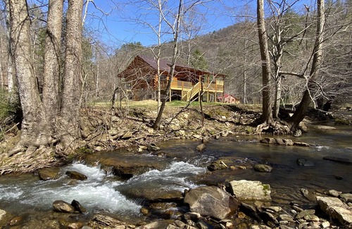 New 2/2 Log Cabin, Rushing Trout Stream, Hot Tub, Fireplace, 8 Acres, WiFi | Cabin in Deep Gap