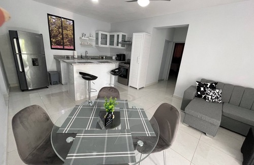 Stay comfortably in Bisono at this 2-bedroom apartment. The bedrooms feature a brilliant queen bed and a peaceful twin bed. Enjoy the welcoming atmosphere of this cozy space, complete with amenities like WiFi, an iron, and AC, pool. With 2 bathrooms, including a hair dryer, guests will feel right at home. We look forward to hosting you at our place.