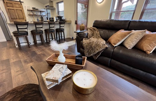 The Great room has tall, vaulted ceiling’s and an electric fireplace providing for incredible, relaxing or romantic getaways. All new furniture featuring a beautiful, dual reclining leather sofa, bedrooms are outfitted with queen beds, and memory foam mattresses finished with bamboo sheets! Close to UPMC Northwest, Venango Regional Airport, Titusville Medical Center, Franklin PA & Downtown Oil City.