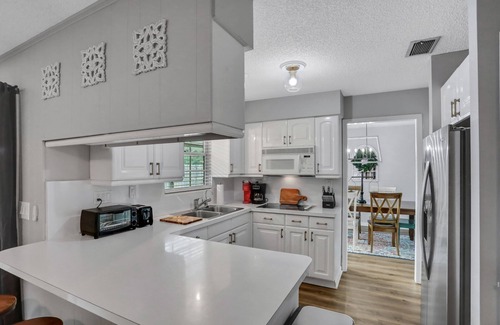 The home is close to many restaurants, grocery stores, banks, gas stations, and main hospital (1/2-2+miles). There are creeks and lakes locally to fish, parks, and outdoor trails. Beaches approx. 45 mins. Sometimes we all need an extra holiday! So many extras included with this home! The home is stocked with Keurig coffee pods, tea, creamer, sugar, hot chocolate, regular coffee and filters, filtered water and ice available from refrigerator and so much more. Please see pet fees. Daily/weekly.