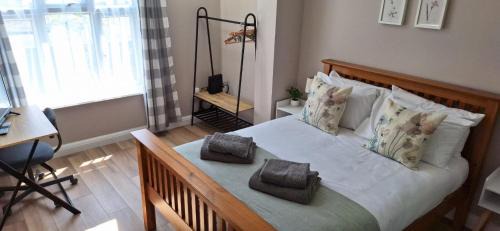 Providing a garden, NEW 3 bedrooms Flat in Ashford near Heathrow offers accommodations in Ashford. The property is around 6 miles from Hounslow West Tube Station, 6.7 miles from Hampton Court Palace, and 7.4 miles from Twickenham Stadium. Free Wifi is available throughout the property and Thorpe Park is 4 miles away. Offering a terrace with garden views, this apartment also features a flat-screen TV, a well-equipped kitchen with a dishwasher, an oven, and a microwave, as well as 3 bathrooms with a walk-in shower and a hair dryer. For added privacy, the accommodation has a private entrance and soundproofing. The apartment has a picnic area where you can spend the day outdoors. Osterley Park is 8.3 miles from the apartment, while Boston Manor Tube Station is 9.4 miles from the property. London Heathrow Airport is 4.3 miles away.