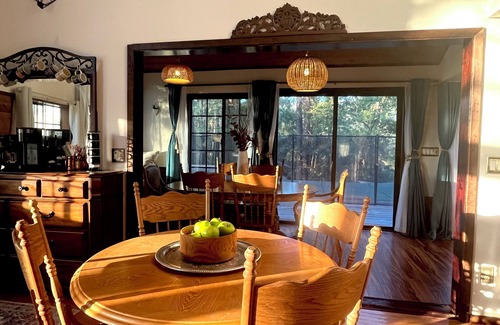 This enchanting mountain getaway by Shasta Lake is located on almost 4 private acres in one of the lake's most coveted areas and bordered on 3 sides by national forest. Enjoy all the beauty and serenity of a remote getaway while still conveniently located just a few short minutes from all the lake's best attractions; Shasta Caverns, Holiday Harbor, and more. Stunning 360 nature views and a thoughtfully designed interior make this a can’t-miss stay for both romantic getaways and family vacations.