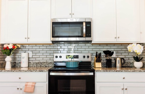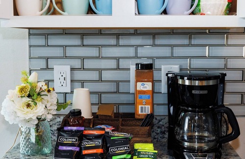 Relax in our comfortable living space with plush sofas and love seats, ideal for unwinding after a day of exploring. The fully stocked kitchen has everything you need to prepare meals, plus coffee supplies to start your mornings right.