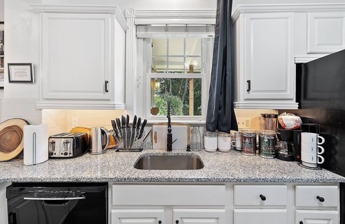 Catering for groups of up to 10 adults, our 4-floor private house has 3 king beds and 2 large sofa beds. The basement (other than the laundry room accessed from the backyard doors) is off limits to guests, but you can enjoy a long private driveway (hard to come by in the town) for up to four regular cars and a child-friendly gated front and backyard which occasionally hosts a bunny rabbit guest or two. Amazon, Netflix, YouTube and a host of other apps are available on our HD TVs with superfast 5G internet. Enjoy TVs both in the living room and in the bedrooms! Kitchen, mud room, dining room, washer and dryer, outdoor second floor balcony deck, walk-in wardrobe, loft office, mini-split AC units, 100% Egyptian cotton linens, large sofa beds in the living room, self check-in with keyless entry and redundancy plans so no need to worry about keys or checking in during the middle of the night. Tick!