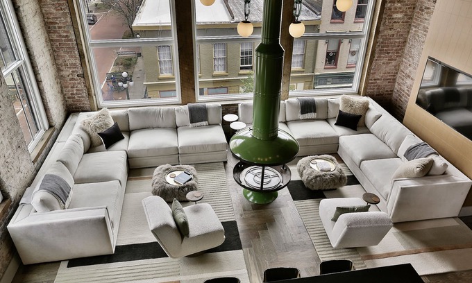 Another luxury loft by When In Roam! Newly added to the list of high end lodging, this Frankfort, Kentucky masterpiece is just steps from Buffalo Trace! We've reimagined and renovated the entire top floor of the historic Mason & Hoge Building at the mouth of the Kentucky Bourbon Trail on Main Street of our state's capital city. This stay is an experience within itself, as you are enveloped in audacious creativity and intentional luxury with no lack for wow factors! To boot, it's an easy walk to several local restaurants, coffee shops and bars. You and your group will remember this experience for a lifetime. Whether you are staying here for the first time or this is part of the tour of exceptional experiences provided by When in Roam, you can rest assured that our accommodations and amenities will leave you breathless. Let us treat you to a taste of Kentucky that will give you stories to tell for a lifetime.