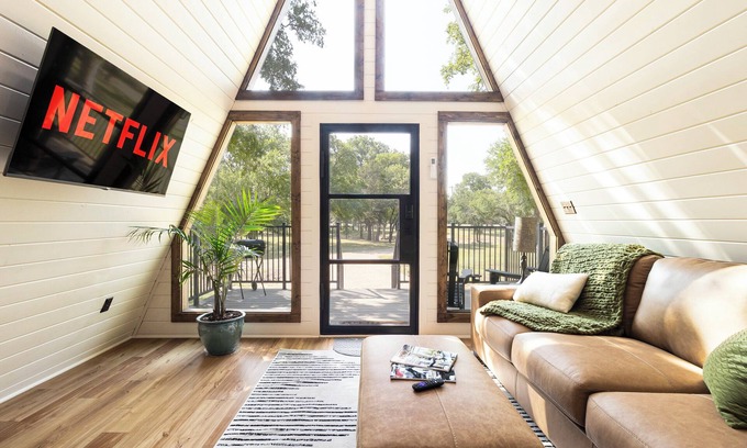 Looking for the perfect romantic getaway or a peaceful solo retreat right in Fort Worth? This charming intimate 350 sq foot A-frame newly built cabin is your perfect escape. Designed for two, it offers cozy comfort with a spacious king sized bed, inviting you to unwind and reconnect in a tranquil, nature filled setting.